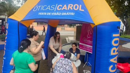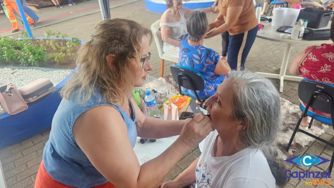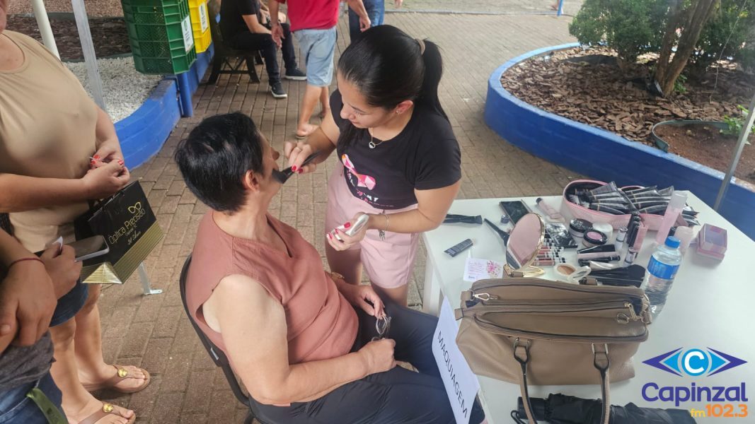 Na tarde desta segunda-feira (16), a Praça Pedro Lélis da Rocha, no centro de Capinzal, foi palco da ação social “Ser Mulher”, uma programação especial voltada às mulheres da comunidade em alusão ao Mês da Mulher. O evento reuniu dezenas de participantes e proporcionou uma tarde marcada por cuidado, integração e valorização feminina. A iniciativa ofereceu diversos serviços gratuitos voltados ao bem-estar e à autoestima, como cuidados capilares, maquiagem, design de sobrancelhas e buço, testes oftalmológicos, atendimento com fisioterapeuta e aula de zumba.