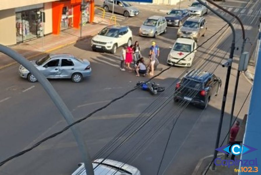 Uma colisão entre um carro e uma motocicleta foi registrada no final da tarde desta segunda-feira (10) na Rua Presidente Nereu Ramos, esquina com a Rua Ernesto Hachmann, no centro de Capinzal.