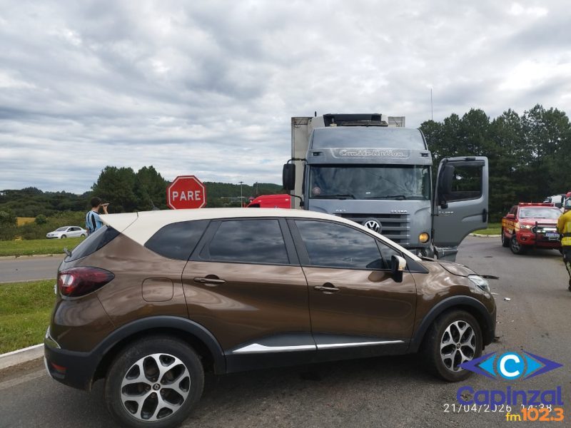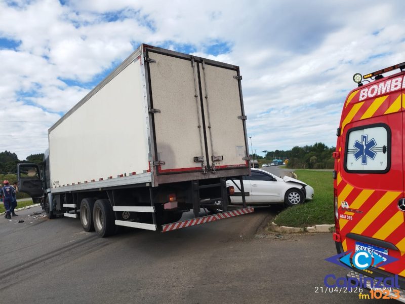 Um acidente de trânsito mobilizou equipes do Corpo de Bombeiros Militar na tarde desta terça-feira (21), por volta das 14h27, na BR-282, sentido Curitibanos, no trevo de Tupitinga, em Campos Novos.