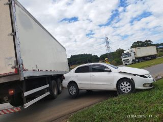 Acidente envolve caminhão e dois carros na BR-282 em Campos Novos