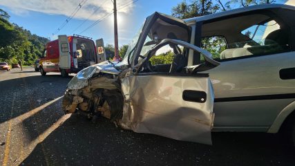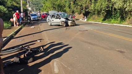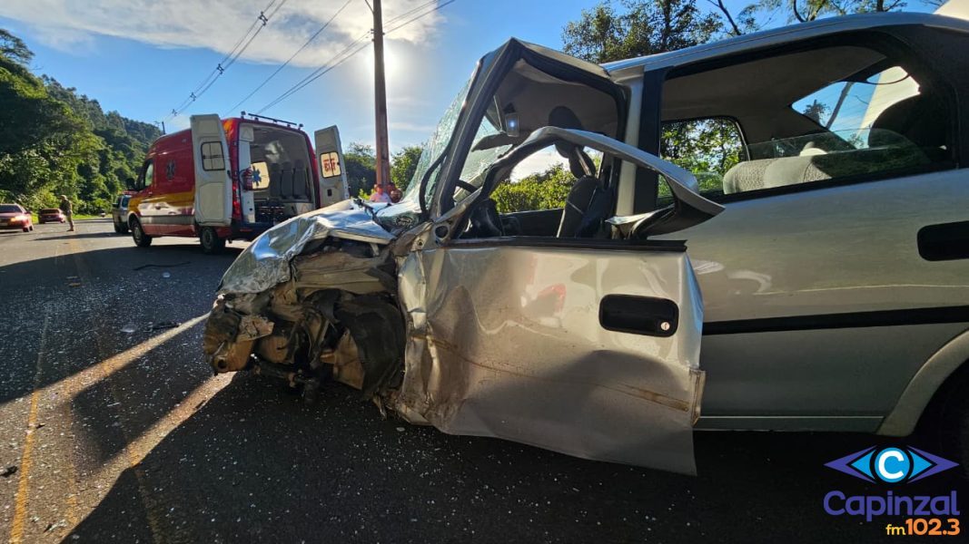 O acidente envolveu um Chevrolet Corsa, com placas de Capinzal, um Chevrolet Onix, de Ouro, e um Toyota Corolla, também de Ouro.