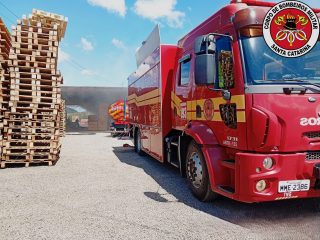 Ao chegar ao local, as guarnições constataram que o incêndio estava em fase de crescimento, atingindo uma área coberta anexa a uma fábrica de paletes de madeira.