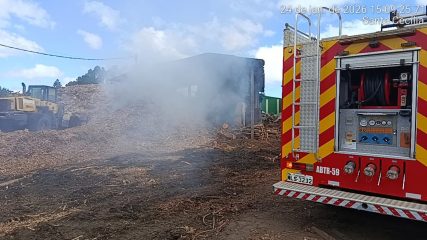 Ao chegar ao local, a guarnição confirmou que se tratava de um princípio de incêndio em uma correia transportadora de cavaco destinada à alimentação da caldeira, atingindo uma área aproximada de 22 metros quadrados. O local era aberto e apresentava calor intenso e presença de fumaça.
