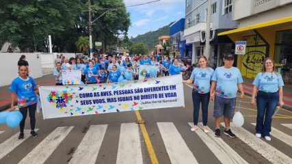 A programação teve início com concentração na Praça Pedro Lélis da Rocha, reunindo participantes formados por alunos da AMA, APAE, estudantes de escolas municipais e estaduais, autoridades, familiares de pessoas com autismo e comunidade em geral. Em seguida, a caminhada percorreu as ruas Ernesto Hachmann, XV de Novembro e Carmelo Zocoli, até chegar em frente à Prefeitura, onde ocorreram as demais atividades do evento.