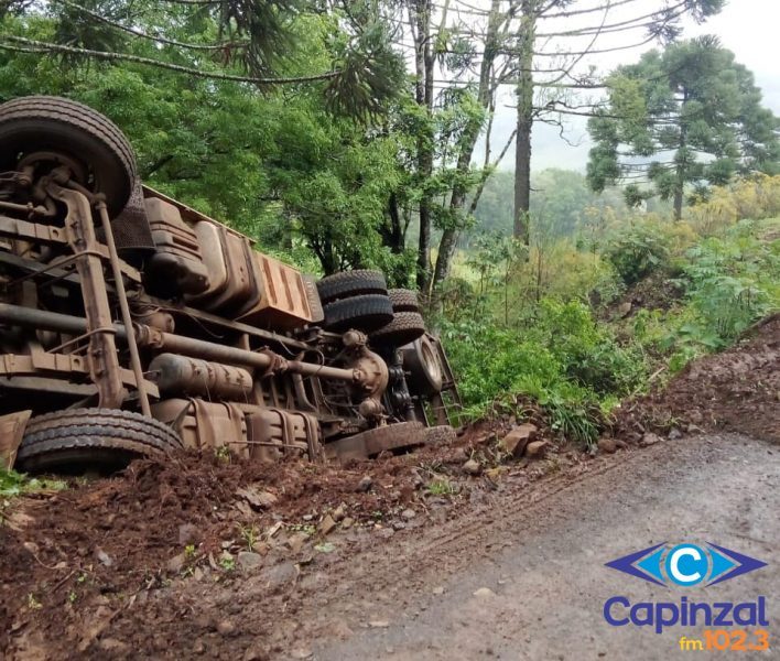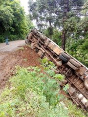 Um caminhão VW/26.320 CRM 6X2, com placas de Videira, carregado com cerca de 91 suínos, saiu da pista e tombou no início da tarde desta quarta-feira (29), em uma estrada da comunidade de Linha Andreis, interior de Ouro. O acidente aconteceu por volta das 12h10. Os Bombeiros não chegaram a ser acionados.