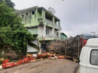 Caminhão com placas de Capinzal fica sem freio e atinge veículos em Herval d’Oeste