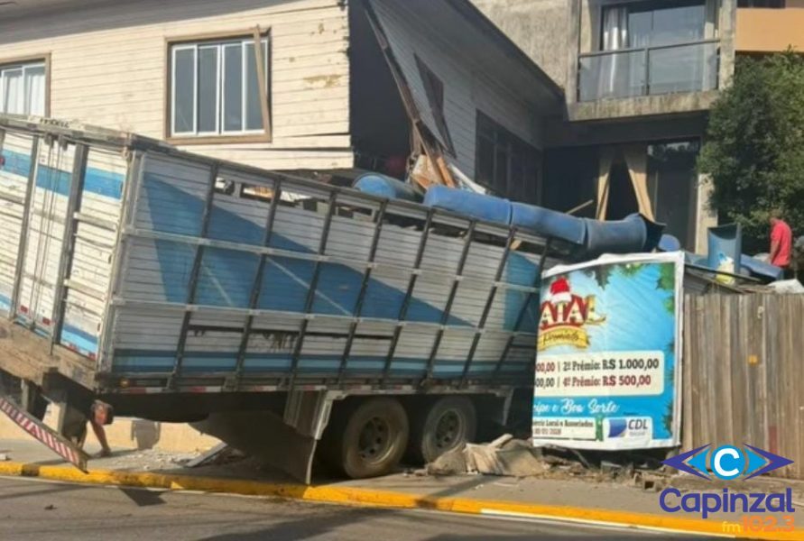 Caminhão sem freios atinge casa no centro de Ibicaré em local já marcado por acidentes