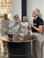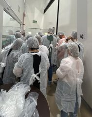 A primeira parada foi na Laticínios Tirol, onde o grupo foi recepcionado para conhecer de perto toda a estrutura da indústria, desde a recepção do leite até as etapas finais de produção. Durante o tour, os participantes puderam observar o alto nível de tecnologia empregado na indústria e os rigorosos padrões de qualidade adotados até que o produto chegue ao consumidor.