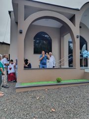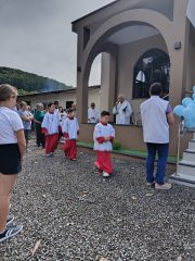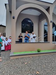 A reinauguração contou com o tradicional corte da fita e a celebração de uma missa, presidida pelo Frei Ivo Lazzarotto, com a participação do diácono Anoldo Gonçalves Walter. Após a celebração, foi realizado um almoço por adesão, reunindo cerca de 280 pessoas, entre membros da comunidade e visitantes.