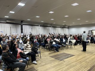 Foto: Deputado Pedro Uczai na assembleia realizada no ano de 2025 em Capinzal
