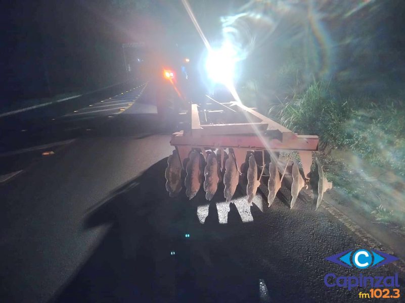 Um veículo Chevrolet/Prisma, com placas de Capinzal, colidiu em um implemento agrícola acoplado em um trator na noite desta sexta-feira (10), na SC-150, em Lacerdópolis.