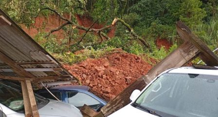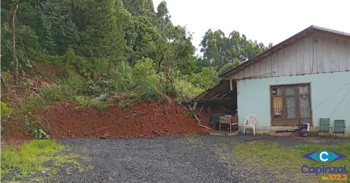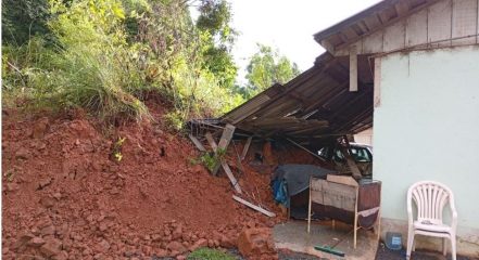 Uma residência localizada ao lado da área atingida também foi afetada pelo deslizamento, e a família que mora no local precisou ser retirada preventivamente por questões de segurança.