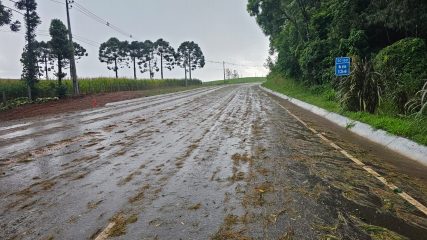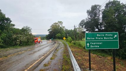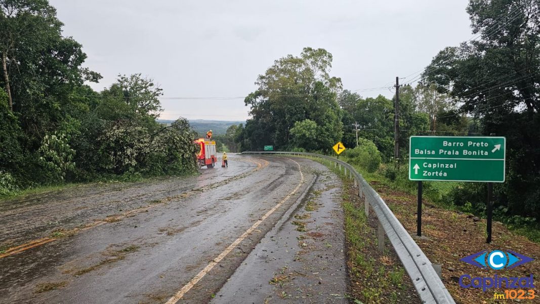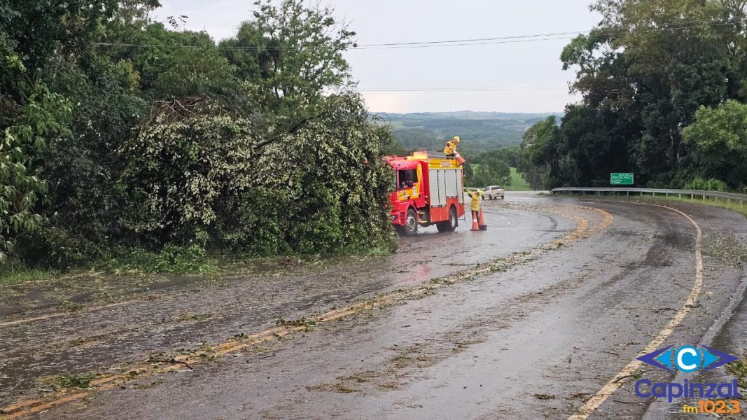 motosserra para a remoção dos galhos e a desobstrução da rodovia. Apesar dos