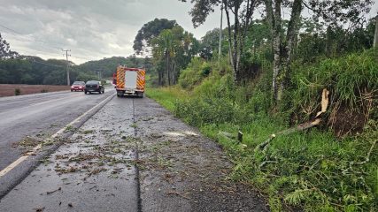 Militar atendeu diversas ocorrências de queda de árvores ao longo da SC-150. Um