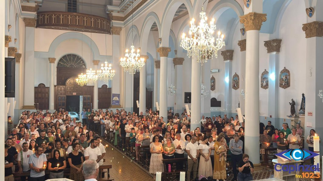 Na Matriz, a luz do Círio Pascal permanece acesa, como símbolo de uma fé viva e renovada, iluminando a caminhada dos fiéis rumo à vida nova em Cristo ressuscitado.