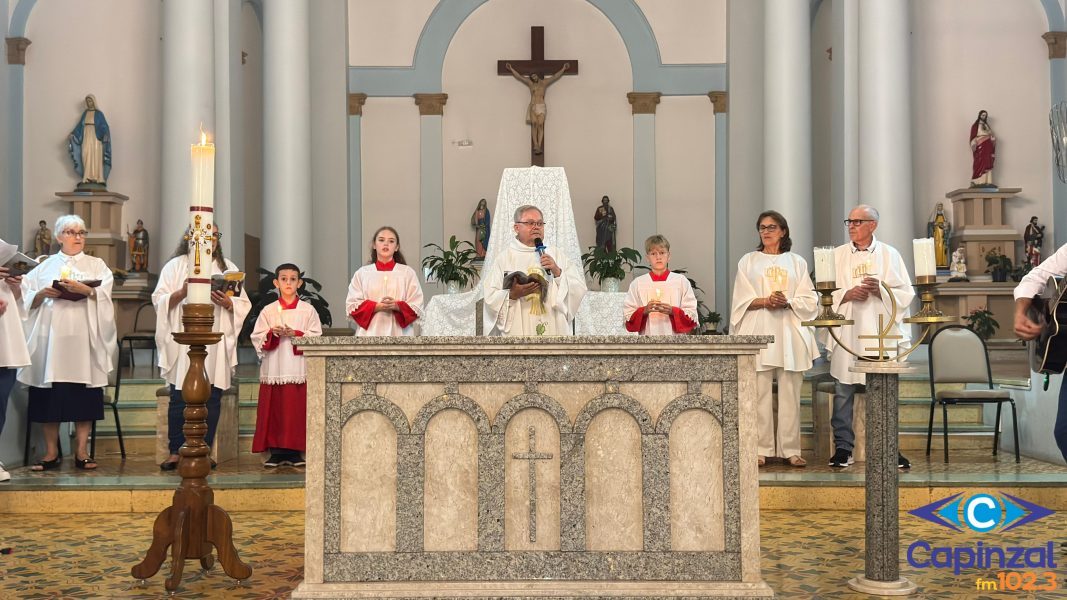 Na noite deste sábado, 04 de abril, a comunidade católica se reuniu na Igreja Matriz São Paulo Apóstolo para a celebração da Missa da Vigília Pascal, considerada a mais importante da fé cristã. A celebração teve início às 19h e foi presidida pelo pároco Frei Justino Félix Stolf, marcando o encerramento do Tríduo Pascal e a chegada jubilosa do Domingo da Ressurreição.