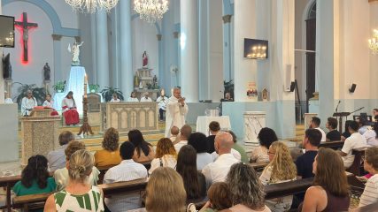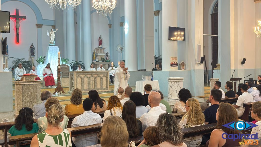 A celebração seguiu com a Liturgia Eucarística, reunindo a comunidade em torno da mesa da partilha e da fé.