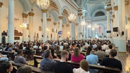 Na sequência, ocorreu a Liturgia Batismal, com a bênção da água e a renovação das promessas do Batismo. A celebração também foi marcada pelo batismo de quatro pessoas, em um gesto que reforça o compromisso com a vida nova em Cristo e a vivência do Evangelho.