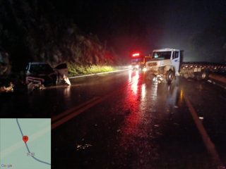 Um acidente de trânsito envolvendo um carro e um caminhão foi registrado na noite desta terça-feira (28), por volta das 21h35, na BR-116, km 134, sentido Lebon Régis, no município de Santa Cecília.