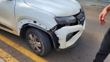 Apesar do impacto, ninguém ficou ferido. O acidente resultou apenas em danos materiais, principalmente no parachoque dianteiro do carro que pertence a uma empresa de Joaçaba.