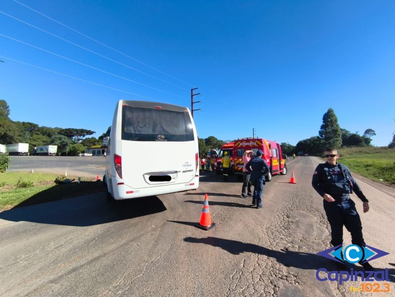 A ocorrência foi registrada por volta das 14h35min e mobilizou equipes de Faxinal dos Guedes, com apoio da viatura de Ponte Serrada. No local, foi confirmada uma colisão envolvendo um micro-ônibus e um Chevrolet Vectra.
