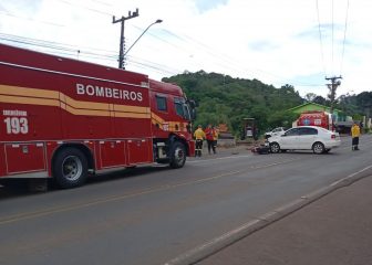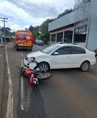 A ocorrência foi atendida pelo Corpo de Bombeiros Militar de Tangará, que constatou uma colisão lateral envolvendo um VW Polo, conduzido por um homem de 29 anos, e uma motocicleta Honda CG 125, pilotada por um jovem de 21 anos.