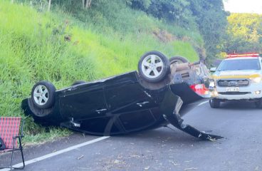 Colisão entre dois carros seguida de capotamento deixa feridos em Itá