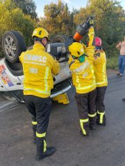 No veículo capotado estavam duas vítimas. Um homem de 55 anos sofreu fraturas na pelve e nos arcos costais, sendo atendido pelo SAMU e encaminhado ao hospital. Já outro homem, de 66 anos, ficou preso no interior do automóvel, sendo necessário o trabalho de desencarceramento por parte dos bombeiros, com retirada da tampa do porta-malas para possibilitar o resgate. Após o atendimento, ele também foi conduzido ao hospital.