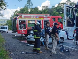 Equipes dos Bombeiros Voluntários, do SAMU e da Polícia Rodoviária Federal atuaram no atendimento da ocorrência.