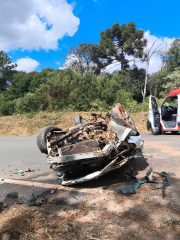 De acordo com o Corpo de Bombeiros Militar, a ocorrência envolveu uma colisão frontal entre dois veículos. No local, a guarnição confirmou que um Chevrolet Cruze estava capotado sobre a pista. O condutor conseguiu sair do veículo por meios próprios, sendo encontrado consciente e orientado, mas com suspeita de fratura na coluna. Ele recebeu atendimento e foi encaminhado pela equipe do Samu.