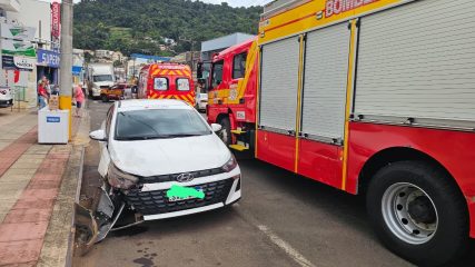 Um acidente de trânsito envolvendo dois veículos foi registrado na manhã desta terça-feira (7), na Rua Felipe Schmidt, no Centro de Ouro, nas proximidades do mercado Macarrão.