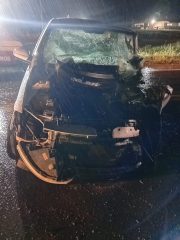 Colisão frontal na BR-470 deixa homem inconsciente e preso às ferragens