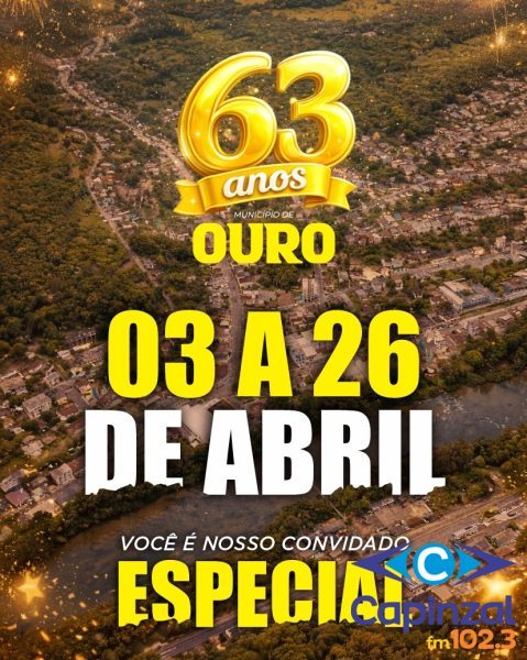 O município de Ouro comemora no próximo dia 07 de abril, 63 anos de emancipação político-administrativa. Para marcar a data, uma programação especial será oferecida à população. Confira a programação: