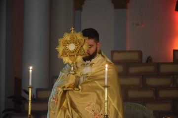Na segunda-feira, dia 16, às 19h30, quem preside a celebração é o Padre Gilvani Capitani Cordeiro, com o tema “Um povo exultando de alegria”.