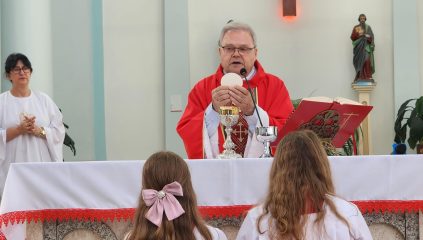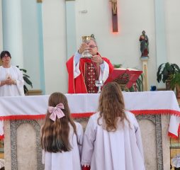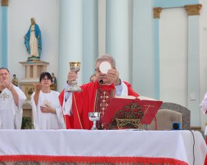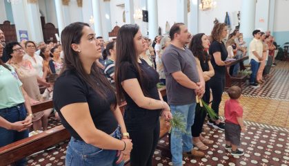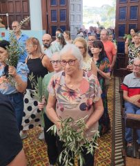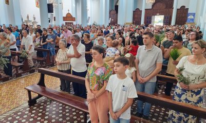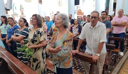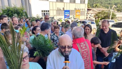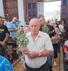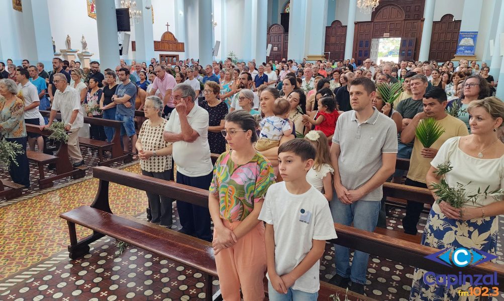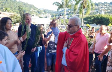 A celebração na manhã deste domingo (28), na Igreja Matriz São Paulo Apóstolo foi presidida pelo pároco Frei Justino Stolf, com liturgia conduzida pelo ECC – Encontro de Casais com Cristo da paróquia. Fiéis participaram do momento especial, que simboliza fé, renovação e o começo das celebrações pascais.