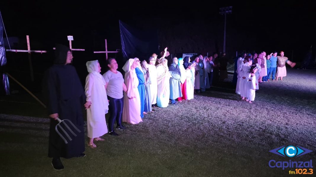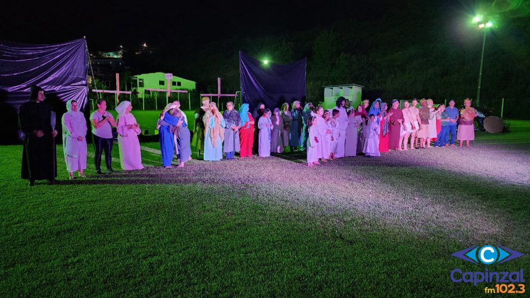A encenação da Paixão de Cristo, realizada na noite de quarta-feira (1º), no campo do bairro São Cristóvão, em Capinzal, reuniu um bom público e foi marcada por momentos de fé, emoção e reflexão durante a Semana Santa.