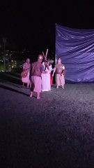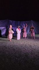 Ao todo, 32 pessoas participaram diretamente da encenação, entre atores e equipe de apoio. Adriana também ressaltou a colaboração de moradores de outras localidades, como os loteamentos Colina e Parizotto, que contribuíram para a realização do espetáculo.