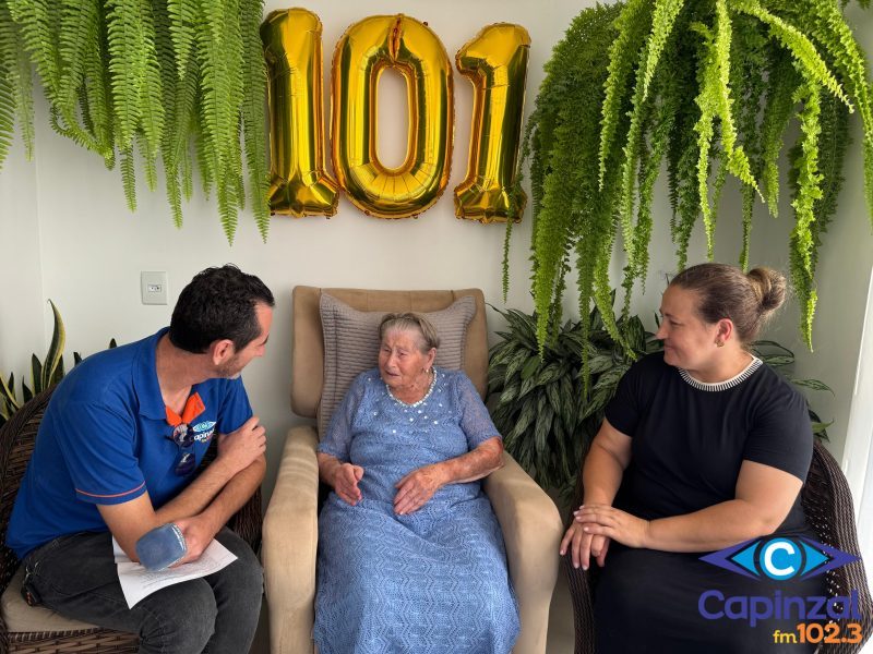 Em nome da equipe da Capinzal FM, queremos prestar uma homenagem mais que especial à Dona Alice Oliva Calegari Savaris, neste momento tão significativo de seus 101 anos de vida. Dona Alice, sua história é um verdadeiro exemplo de fé, coragem e amor à família. Uma trajetória construída com dedicação, superação e valores que seguem inspirando gerações em Lacerdópolis, Ouro e toda a região. Que Deus continue lhe concedendo saúde, paz e muitos momentos de alegria ao lado de seus filhos, netos, bisnetos e tataranetos. Que sua fé siga sendo luz e inspiração para todos que têm o privilégio de conviver com a senhora. Receba o carinho, o respeito e os mais sinceros parabéns de toda a equipe da Capinzal FM. Feliz 101 anos, Dona Alice!