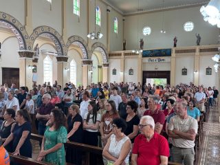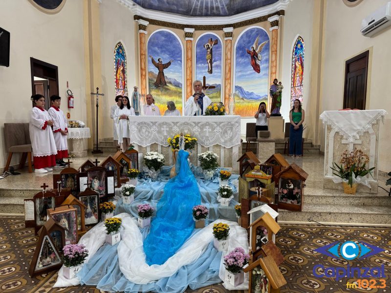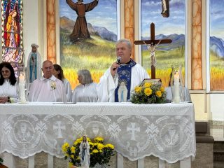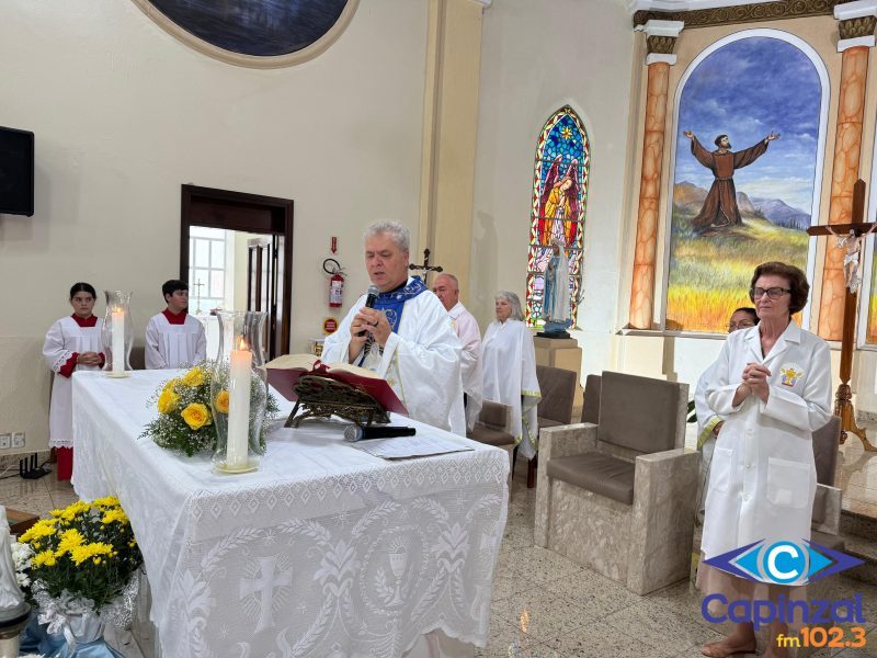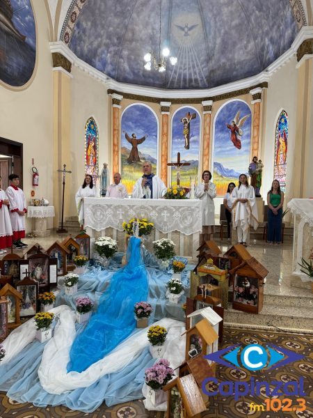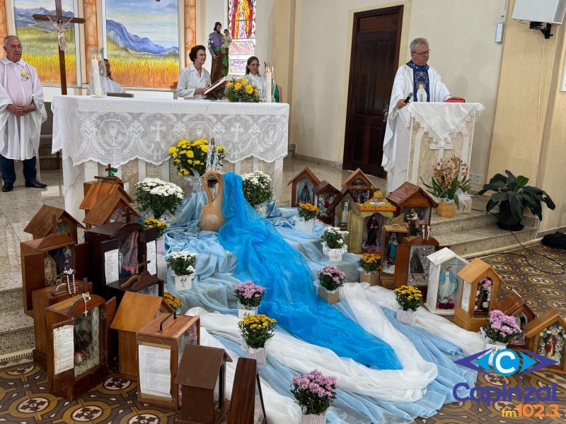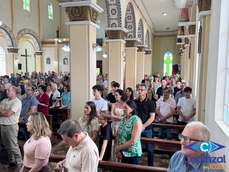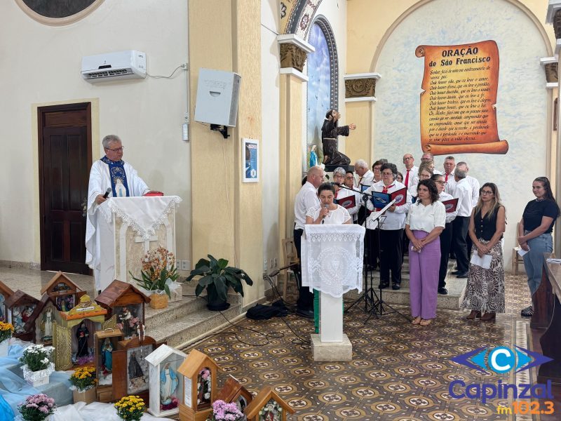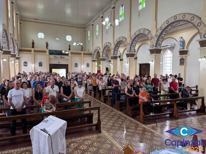 Às 10h, foi celebrada a Santa Missa pelo Padre Davi Finger. Um dos momentos mais marcantes da celebração foi a apresentação das intenções de cada comunidade, seguida da bênção das capelinhas trazidas pelas lideranças do interior e da cidade, reforçando a união e a fé das famílias.