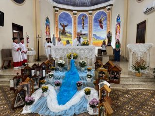 A Paróquia São Francisco das Chagas de Lacerdópolis promoveu neste domingo, dia 15, a tradicional Festa das Capelinhas, em honra a Nossa Senhora de Lourdes. Em razão da previsão de chuva, a celebração foi transferida da gruta para a Igreja Matriz.