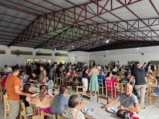 Ao meio-dia, o almoço foi servido no centro comunitário, reunindo um grande número de participantes. À tarde, a programação seguiu com momentos de integração e confraternização entre as famílias.