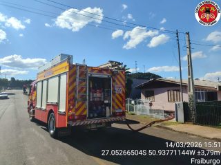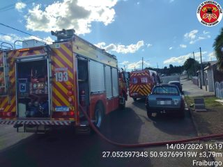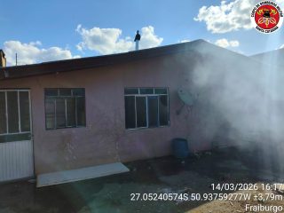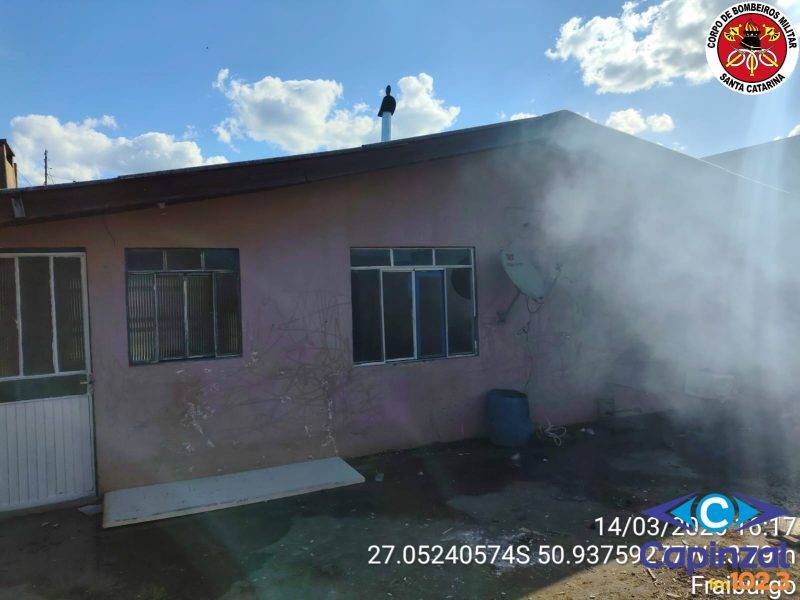 O Corpo de Bombeiros Militar atendeu na tarde deste sábado, dia 14, um incêndio em edificação na Rua Batista Rui, no bairro São Miguel, em Fraiburgo.