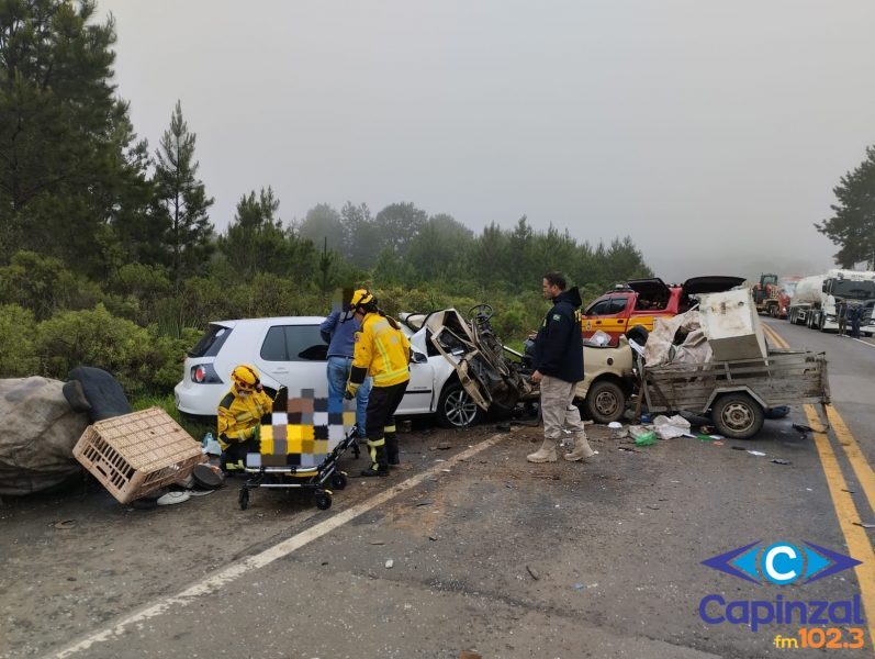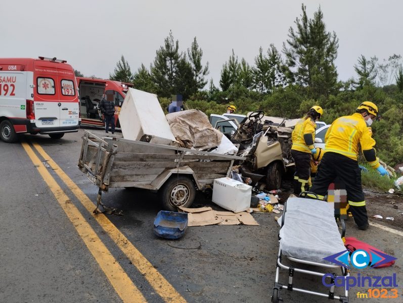 Grave colisão frontal deixa três feridos na BR-470 em Curitibanos