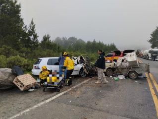 O acidente envolveu dois veículos — um VW Golf, placas Mercosul, e um Fiat Uno Mille, também com placas Mercosul e acoplado a uma carretinha. A colisão frontal resultou em três vítimas com diferentes gravidades de lesão.