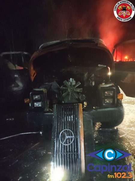 Incêndio atinge caminhão em ferro-velho de Fraiburgo