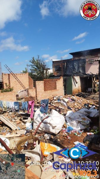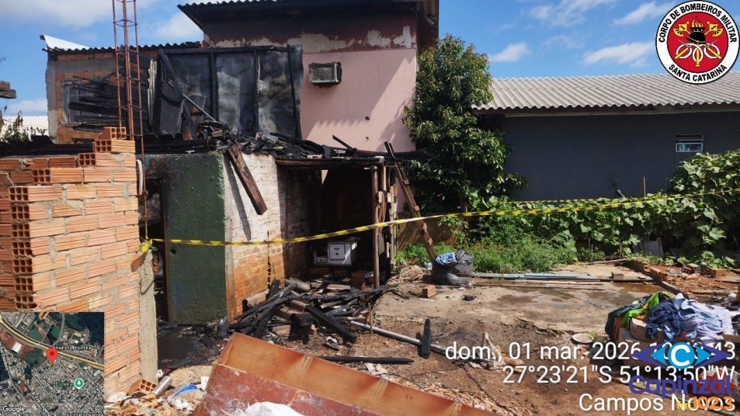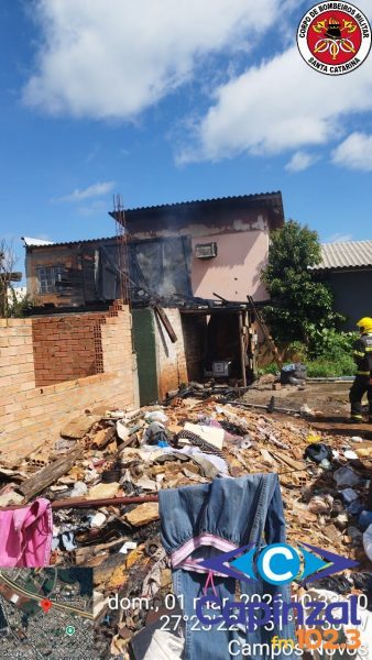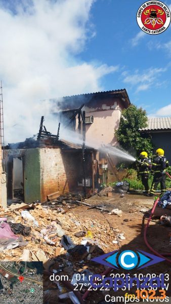 Incêndio destrói residência e mobiliza bombeiros em Campos Novos