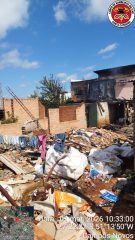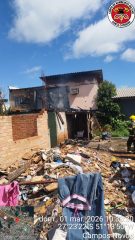 Quando as equipes chegaram ao local, o fogo já havia consumido quase toda a edificação. O imóvel era uma residência mista com cerca de 40 metros quadrados, sendo aproximadamente 20 m² no pavimento inferior e outros 20 m² no pavimento superior.