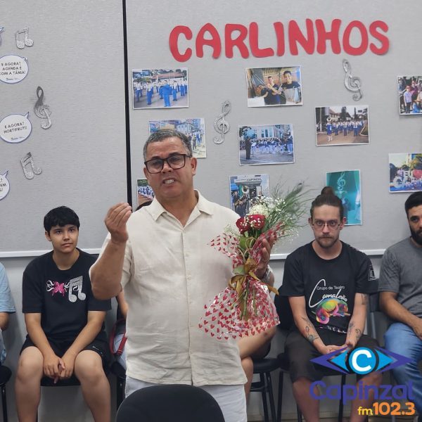 Visivelmente emocionado, Carlinhos acompanhou cada manifestação de afeto. As homenagens destacaram não apenas o domínio de diversos instrumentos, mas, principalmente, o trabalho como maestro da Banda Municipal, onde teve papel essencial na formação de músicos e no fortalecimento da cultura em Capinzal.