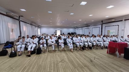 O objetivo do encontro foi atualizar os participantes sobre as novas regras do karatê para 2026, além de oferecer treinamento prático para quem atua na arbitragem das competições. Durante o curso, os participantes também realizaram uma prova escrita para obtenção do credenciamento oficial da federação.