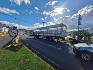 No local, a Polícia Militar Rodoviária (PMRv) constatou uma colisão entre um caminhão de transporte de suínos e uma motocicleta.